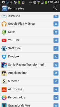 - Lista de aplicativos e suas permissões: Você pode visualizar uma lista de aplicativos e todas suas permissões.