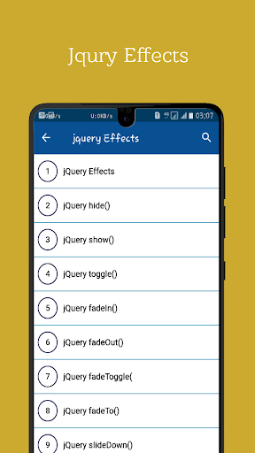 Jquery full tutorial application provide you best fee tutorials of lean jquey. jquery is must in everywhere. is needed in web development and mobile application development.