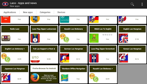 If you are developer of app/game specific to Laos and it isn't in our list feel free to send us app package name (google play link) and will be happy to add to in our database.