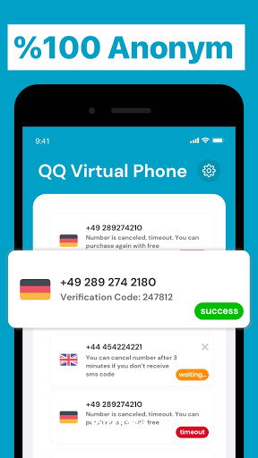 • Virtual Numbers App provides numbers from over 100 countries, but if you don't have a local phone number for your country, you can still get a US number or any other number and activate a QQ account!