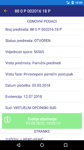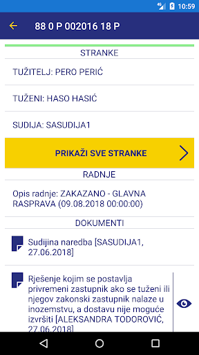 App specifically targets existing and potential users of the web service for authorised access to court case information hosted by the High Judicial and Prosecutorial Council of Bosnia and Herzegovina. The web service is available at pravosudje.ba/predmeti. Both the web service and the app provide access to updates in court cases to authorised parties in proceedings (service users). Following verification of users’ identities, trial courts issue access information for relevant cases to users. With obtained access information, users can use either the web service or the mobile app. The web service is predominantly used by attorneys at and by private citizens, who are also the target audience for this app.