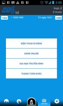 - Recharge Vcoin with multiple methods such as via Visa, Master, SMS and bank account, phone card…