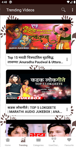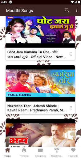 You can save any Marathi song video as favorite and watch later. All Marathi gane video are categorized under different categories like bhakti geet Marathi, Marathi lavani , comedy, movie song like that there are 16 categories so that it will be very easy for you to find a Marathi song that you love. 😍 Be it old Marathi song or any Marathi gani.