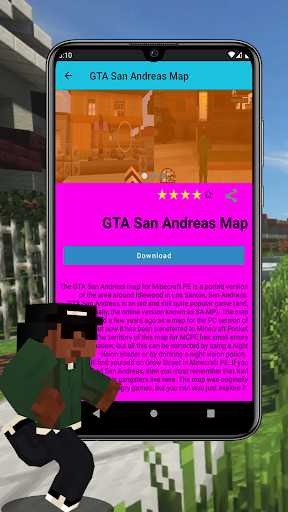 Legendary game fans and want to play don't worry now there is a minecraft pe mod that can help you Craft Auto Online maps for mindcraft Pocket Edition. Our maps for gta games would be so awesome now they can deliver things with a really gta free cool and awesome positive impact giving you the chance for something cool to find yourself in your los santos and CJ area in various interesting places. Using the Craft Auto Online map for Minecraft Pocket Edition, you will soon be the best using the existing car the ucok can go everywhere finding yourself near the house of the main character of the game gta - Cj. Also remember the Los Santos area is the most recognizable gta map place. The location on the minecraft gta map will be located in the city center and you will use on the legendary road. The street, the house, the interior of the house, the headquarters of the rooms - everything is sons of the gta 100 percent really like proud of the railroad furniture so it is very similar to the real thing. After downloading our map Craft Auto Online for Minecraft Pocket Edition, you can visit the famous stadium in the city of Los Santos, where the coolest races take place, you can see villagers competing where some are winners and others lose. You can also visit the business district that works as ender men and gangsters in the game city of san andreas, where the most dangerous criminal groups are located.