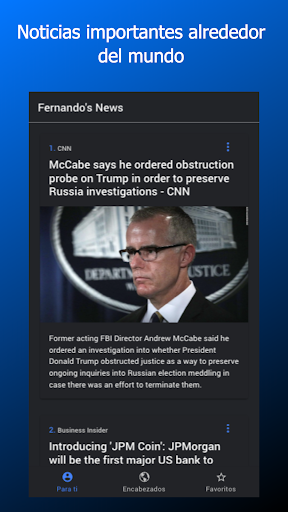 Con esta App tendrás un acceso rápido y cómodo a todas las noticias de última hora de todo el mundo. Podrá verlas, abrirlas, e incluso guardar tus noticias preferidas en el apartado de "Favoritos" para poder revisarlas más adelantel