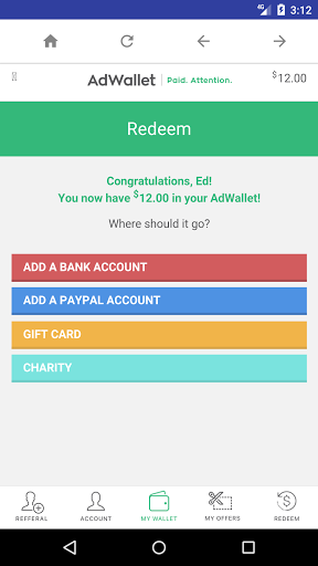 AdWallet pays you for your attention when you watch video ads and take surveys that are targeted to you and your interests. Its quick and easy to sign up and start earning money right away. Yes, its real money you can transfer to your bank account or get a gift card. ... AdWallet is legit!