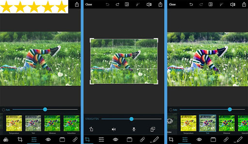 Color corrections of photo by using brightness, contrast, saturation and filter effects.