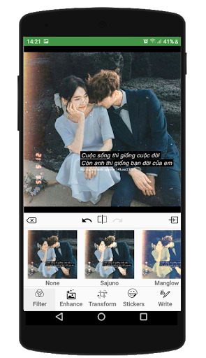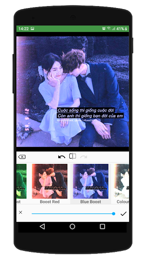 * Ngoài những chức năng chỉnh sửa ảnh thông minh , bạn cũng có thể thay đổi hoặc thêm vào những bức ảnh những hiệu ứng ảnh với những sắc thái khác nhau .