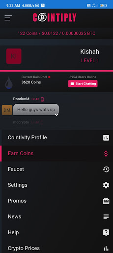 * Chat with other crypto currency enthusiasts and earn while you chat.