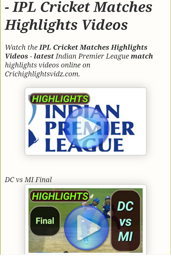 Watch the free cricket highlights videos, cricket videos, cricket match articles & cricket highlights with HD quality only on Crichighlightsvidz app