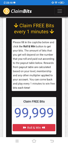 Please fill in the captcha below and click the Roll & Win button to get your bits. The amount of bits that you get will depend on the number that you roll and paid out according to the payout table below. Rewards from payout table are calculated based on your level, membership and any other multiplier applied to your account. You can come back and play every 1 minutes to win free bits each time!