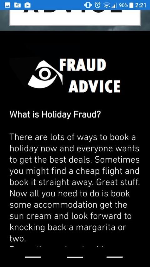 This app is like a leaflet you can always have on you which gives the general public a insight into fraud and how to protect yourself against it. Most victims of fraud don't understand how the fraudster are able to attack them this simple app will hopefully give you the information needed to better protect yourself and business