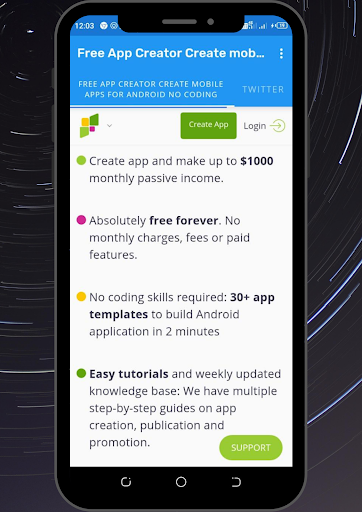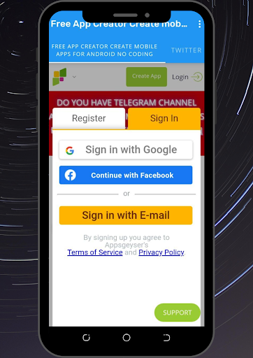Free App Creator Create mobile apps for Android no coding - App Creator is made for everyone who is interested in App Development. AppsGeyser allows you to establish new marketing channel for communicating and attracting new users for your business with mobile software, share your knoweldge and intresting content with the whole world.