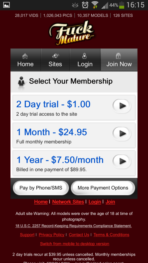 Welcome to FuckMature.com! If you're into hot and experienced older women, then this site is right up your alley. Fuck Mature is home to the hottest mature women and explicit mature porn content. Inside you'll find some of the hottest over 40 adult performers doing all sorts of explicit sex acts in excellent quality videos and crisp, clear photo sets. Fuck Mature strives to deliver the freshest content with its regular updates, huge number of network sites, tons of bonus video feeds and other extras. Sign up now for instant access.