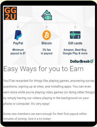 GG2U (as in saying 'good game' to somebody) is a fun and unique rewards program that's free to join. With our new GG2U Premium program, You'll earn GG2U Coins for playing games, taking surveys, and completing offers from our advertisers. You can also earn Video Points for simply having our advertisers' videos playing on your phone, The GG2U Coins and Video Points that you earn will lead to credits to your GG2U account balance (payable to your PayPal account or Bitcoin wallet at Coinbase).