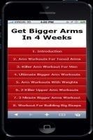 Get Bigger Arms In 4 Weeks is a free ebook app, where you will discover how to train your triceps, biceps, develop lean cut muscle and bigger arms fast! Build up your biceps and triceps. Get those buff biceps and ripped triceps now! Every guy wants bigger arms. There really is no body part that says "big and powerful" as clearly and obviously as a big pair of python arms. The majority of people when either thinking or talking about arms imagine exactly biceps… Still, its contribution to your arm size is much less than the contribution of triceps. Unfortunately, people tend to forget about this muscle group. One more interesting moment is that our arms contain a fair amount of fat. All weight lifters working with heavy weights usually have huge arms; but if they ‘burn fat’ these huge arms the impressive 21 inch will turn into at least 18. Still, 18 inch arms is a very serious result; not everyone is able to achieve it. Why? I won’t talk about experience of other athletes. Instead of this I’ll try to analyze my own experience. Probably you’ll find it strange but I believe that exactly these arms workout methods will suit you as well. I know it because I myself was able to achieve 18 inch arms; and these inches are high-quality and lean, by the way. There are people who are destined to have big arms: they can only bring a spoon to their mouths but their biceps will grow anyway. Such people got their magnificent biceps muscles from their mothers who, most probably, weren’t engaged into weight lifting at all. In general, it’s difficult to find among professional bodybuilders those who got their big arms without difficulties; still, there are some of them. If you want a "quick and dirty" methods that delivers high intensity overload and results that you've never experienced before... here they are. Do you want to discover how to train your triceps, biceps, develop lean cut muscle and bigger arms fast? Build up your biceps and triceps. Get those buff biceps and ripped triceps now! It's easier than you think! So Lets get started! Download this free app and discover how to train your triceps, biceps, develop lean cut muscle and bigger arms fast! Build up your biceps and triceps. Get those buff biceps and ripped triceps now!
