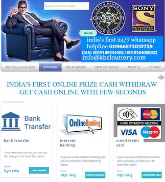 kbc official app launched for customer services, online lottery withdraw, winner list, 24/7 helpline and pre booking of kbc show.the kc lottery winner are updated of any information and get online with exiting features of kbc company like bank transfer, debit/credit card withdraw and internet banking withdraw system.india's first app and all in one stop shop