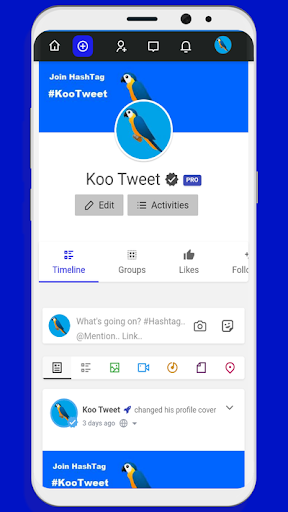 The most important desktop features of KooTweet are also available on the app, such as writing on timelines, liking photos, browsing for people, and editing your profile and groups.