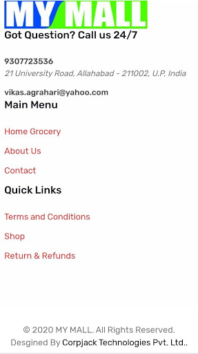 My Mall was founded in December 2019 in Allahabad (Prayagraj) by Vikas Agarahari. we are layble for best service over 23 laks customers of allahabad. my mall has grown into Prayagraj's largest online supermarket with over 4000 products from over 250 brands in Allahabad (Prayagraj). my mall's online store offers a variety of products across various categories: Grocery, fresh Fruits and Vegetables, Rice and Dals, Spices, baby care, Personal care and beauty care products. My mall is committed to making life simpler and grocery shopping a breeze. We guarantee on time delivery, and the best quality!