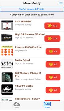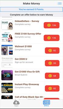 Enter the offers and earn money by collecting points Earn one dollar for every 500 points you can collect a lot of points per day