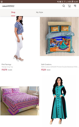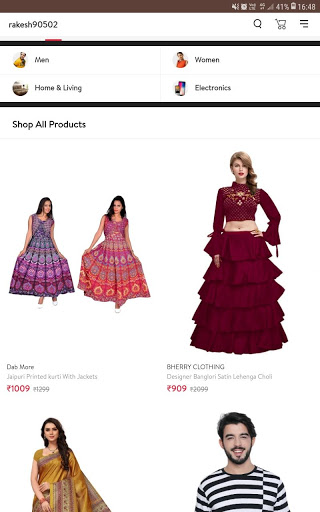 It is a best shopping app. In this app all type products. For example-shirt, t-shirt, pents, ladies suits,& shree . Bed sheets, electronics