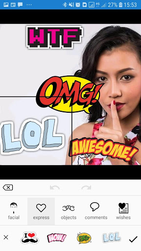 - Add text, emoticons, smiles, emojis, clip arts, stickers and text to your photos and collage.