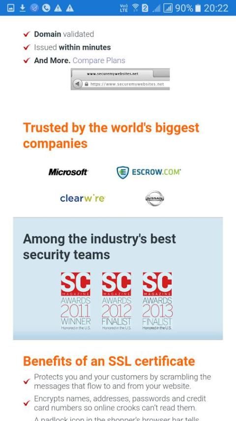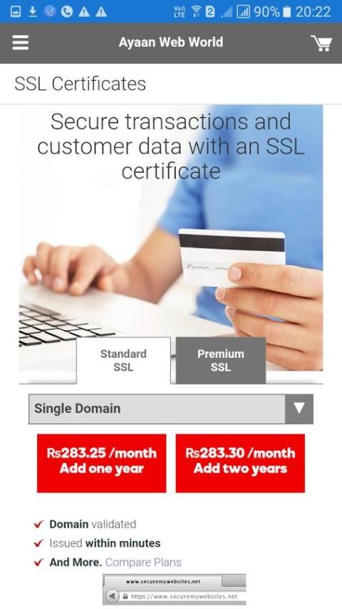 SSL Certificates:Protect transactions and customer data with a SSL Certificate.