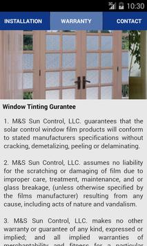 5. All M&S Sun Control, LLC. Window Tinting installers are employees of the company and are not independent contractors. We therefore maintain consistency in workmanship from job to job, year after year.
