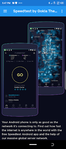 Explore mobile network coverage maps based on real-world data gathered by the Speedtest app. Visualize many mobile carrier networks’ availability down to the street level, right in the app.
