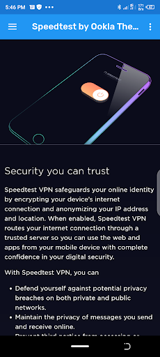 Keep your online connection private and secure with Speedtest VPN™. Use up to 2GB of data over VPN per month for free, or go Premium with unlimited usage for just $4.99 monthly. Speedtest VPN Premium users will also receive no advertisements while their subscription is active.