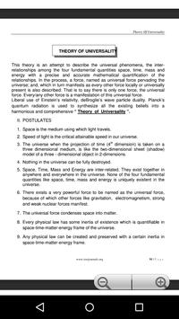 This is an application which carries the Grand Unified Theory in Physics unifying the four fundamental entities space,time,matter and energy through universal force . Now you can read it on your phone with a click !