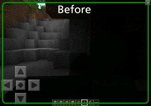 With Dynamic Lights Mod for Minecraft Pcoket (MCPE) enabled whenever you hold a light source such as a torch, glowstone or a bucket of lava in a dark space the room will be lit up. It adds a realistic effect which makes things easier to see while adventuring far down into the depths underground.
