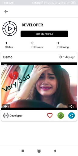 video and you can share it on all platform in just one click.You can create video for your loved once and for friends also.you can save video and photo from status into your gallery.This app has very fast servers for video status streaming and downloading. you can download video in less than a minute even on low internet speed ......