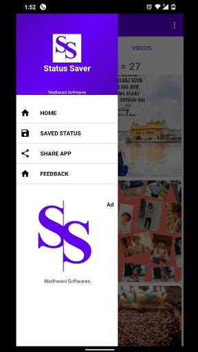 Status Saver is app created by WSoftwares used to save all photos and video status on whatsapp . You can see status you saved on whatsapp in this app . You can also share this video and photo status to others.