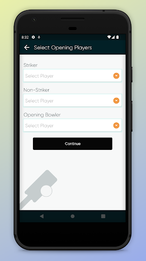 Step 9: Select Opening bowler and batsman -> Click "CONTINUE"