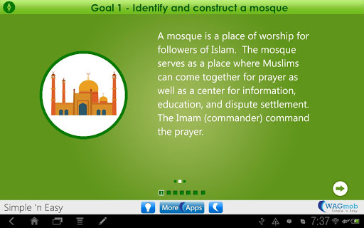 You can learn about Islamic Culture via 07 goals. Each goal provides quiz, explanation and an activity.