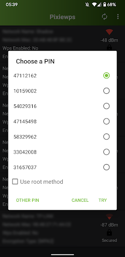 - You can test the PINs with this app and you can connect, but you cannot see the password wifi without root permissions.