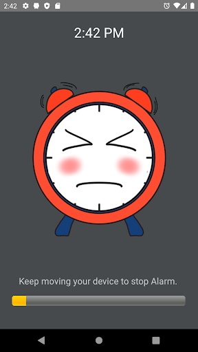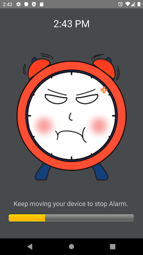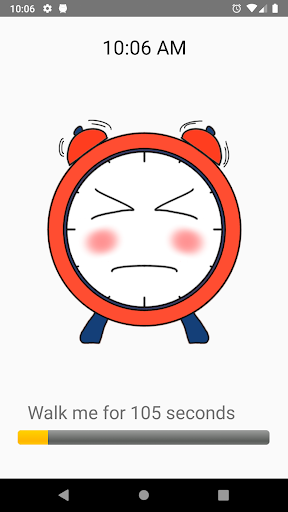 Walk it off Alarm Clock (Formerly known as Angry Alarm) is designed to make waking up easier. This alarm clock makes it hard to fall back asleep by requiring user to continuously keep the phone moving for specified time to stop the alarm.