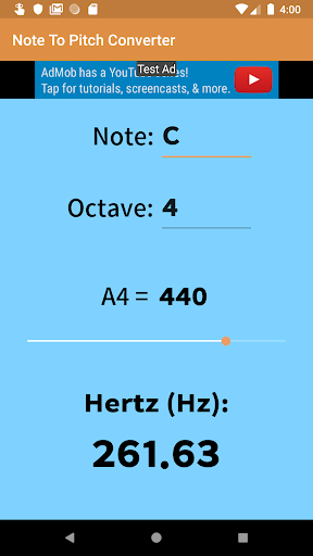 This app quickly lets you see the frequency of any musical note from C0 to B10.
