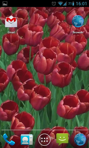 Beautiful Red Tulips Live Wallpaper blown in the wind in HD. Add this flower live wallpaper with some beautiful tulips as live wallpaper to have a relaxing feeling.