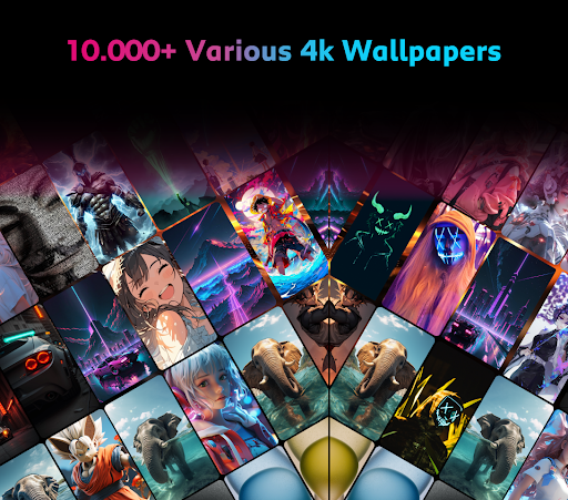 Provides more than 22 categories with many arranged wallpaper 4k/ background including: Anine, Animal, Hero, Emoji, Love, Galaxy, Neon, Bling, Cute, Sport, Live Wallpaper/ Background.... Included themes the 4k wallpapers are all in the top trends and highly appreciated art.