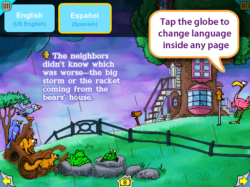 • includes active links to websites or social networks, but ONLY from the PARENTS and TEACHERS pages, not from the storybook pages