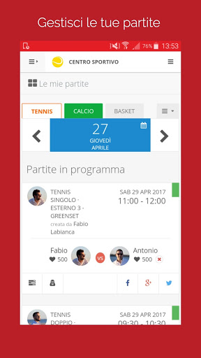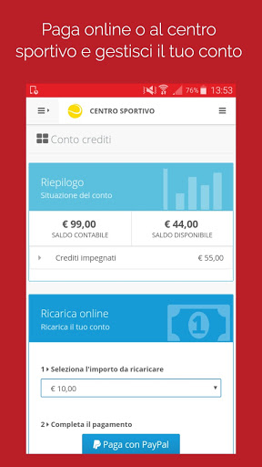 Potrai inoltre accedere ai servizi erogati dal club come la prenotazione online dei campi, i corsi e gli abbonamenti, le quote associative, le attività sportive, le lezioni in programma e molte altre funzionalità.