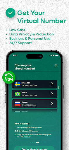 Our app provides you numbers from over 60+ countries, even if you don't have a local or landline phone number, you can get a US number or a second number from other countries within our app and use it to activate a WA account!