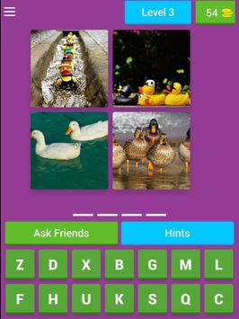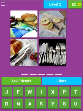 4 pics one word is an entertainment app where you have to find the word which represent 4 pictures on each level. It is small word which is relevant to 4 pics.