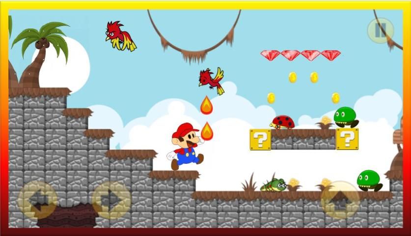 In heat jungle, Mario must pass so much threats to run to target world. The boy Mario can jump, run and Mario can use weapon to kill monster but weapon is hidden in somewhere on the jungle to kill all enemies on the way.