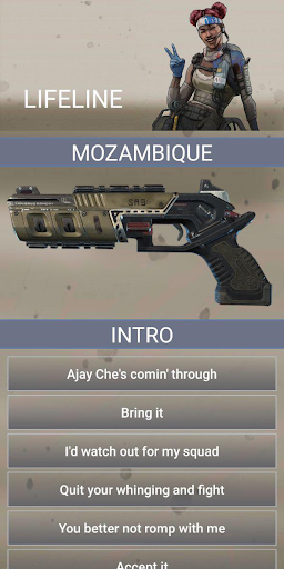 This Unofficial SoundBoard for Apex Legends™ contains a lot of in-game quotes! You can easily find your favourite character and listen to the different phrases, wherever you are. This app has about 480 sounds and will be filled with new voicelines in the future updates.
