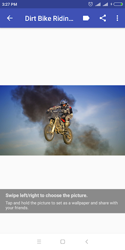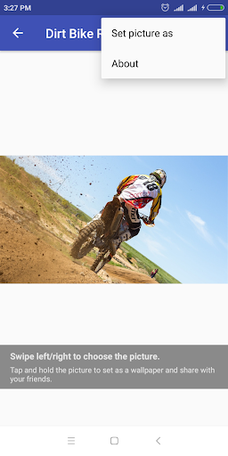The app "Dirt Bike Riding Wallpaper" is a very simple application. It has a very clear interface.