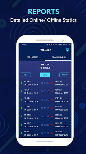 WaSeen: Last Seen Online Notification is the best assistant for you to check your family, your children's online last seen activities. How much time your family, your children are spending online? How often they come online? WaSeen: Last Seen Online Notification gives you instant notification when your children become online. You can check their online offline statics in detailed report.