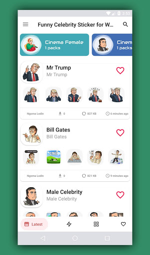 Funny Celebrity Stickers have finally arrived with a lot of Features, Celebrity stickers for WhatsApp free -WAStickerApps is here! You can share with your friends this trending Celebrity Stickers in WhatsApp for free!